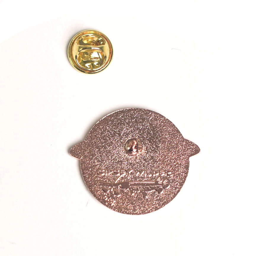 A lovely luna moth flutters across a moon and star-scape. Hard enamel pin with copper plating. Original hand-drawn artwork exclusively available at Sipsey Wilder.